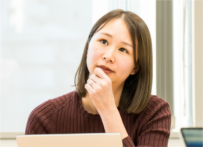 R.T.)私は中国に留学した経験があったので、海外と繋がりがある会社で働きたいと思い就活をしていました。座談会でお会いした先輩社員がとても柔らかい雰囲気のお姉さんで、私もこうなりたいなと思ったのを覚えています。