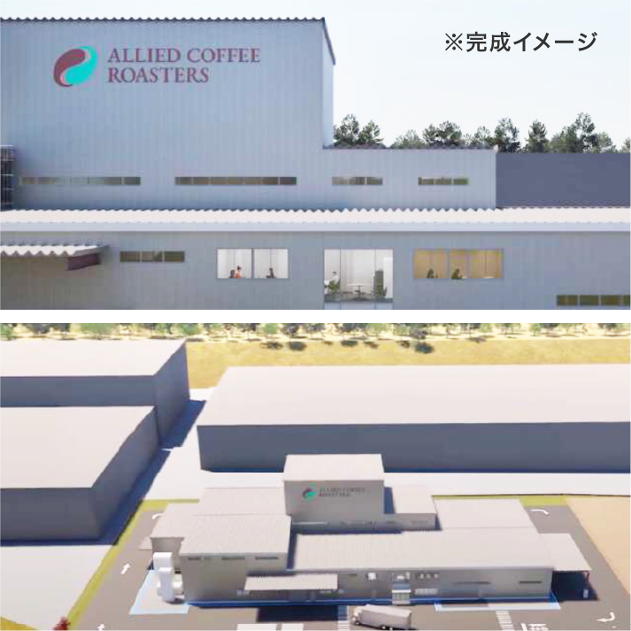 グループ会社の「アライドコーヒーロースターズ」では、現在、「グリーン焙煎」をはじめとした脱炭素の取り組みを強化し、環境に優しく、収益性の高い商品づくりを推進するため、兵庫県小野市に、関西の新たな基幹拠点「小野工場(2026年 12月末完成予定)」を建設中です。安全基準も世界レベルに引き上げ、多様な人が安心して働ける職場づくりを目指しています。既存のお客様向けの製品はもちろん、新規案件にも対応できる生産ラインを備え、国内外へ安定してお届けできる体制を整え、小野工場から、地球にも働く人にもやさしいものづくりを広げていきます。