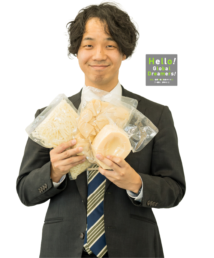 農産事業部では筍以外にも、玉ねぎ、蓮根、唐辛子などをコンテナ単位のロットで扱っています。そして、それら商品ごとに営業が担当としてつき、仕入れから販売までその担当者が全て担っています。この「全て担う」という点こそが、食品事業部が“プロ”人財を創出するポイントなんです。